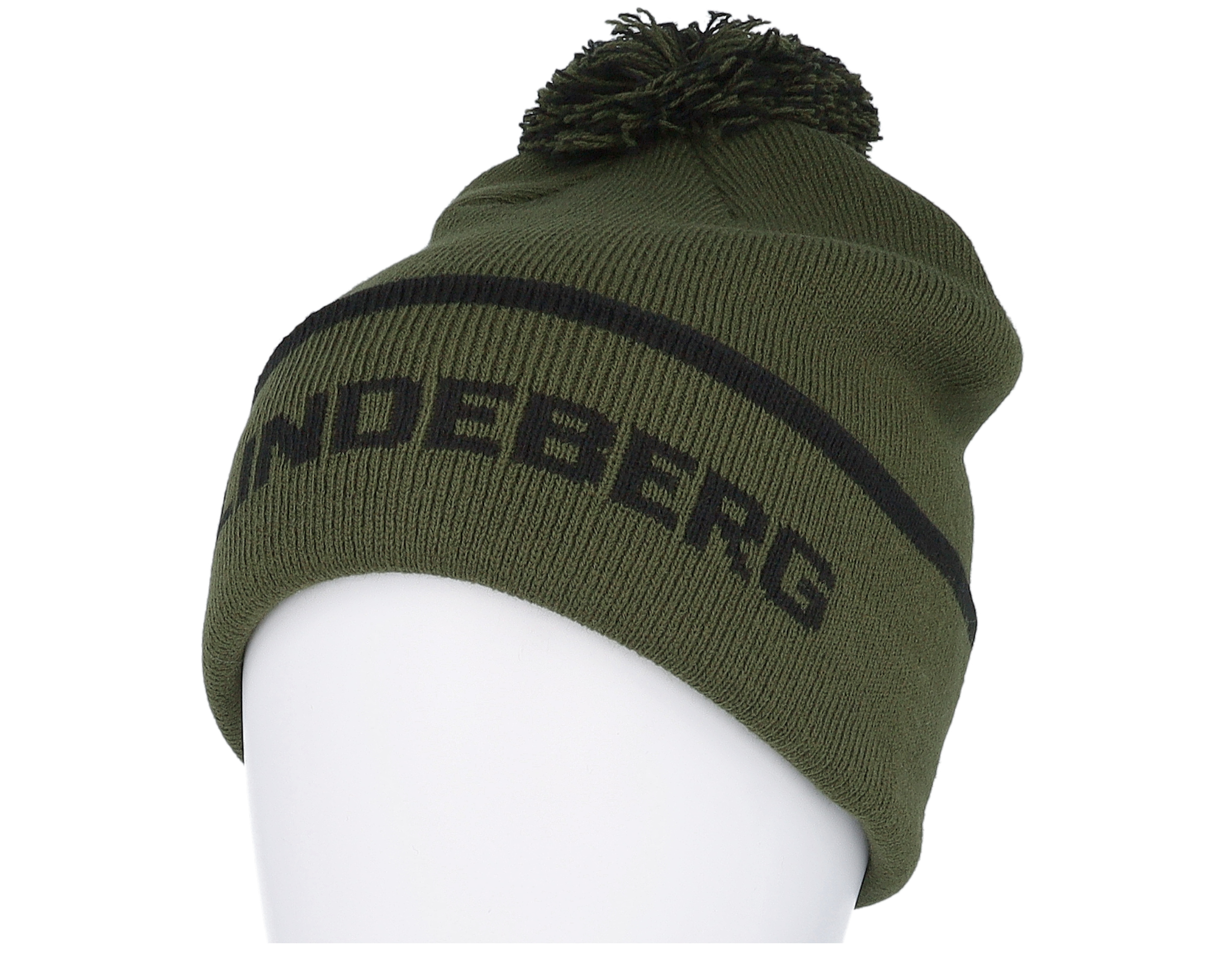 Stripe Beanie Forest Green Pom